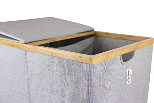 -. Title : InThiSPACE Large Double Sorting Bamboo Laundry Hamper - 24 x 15.75 x 24" H