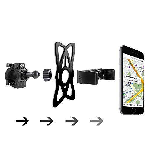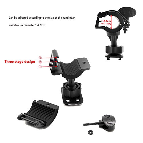 Assembly Installation Instruction Rotate locking knob anticlockwise. Put the locking knob and silicone band through the ball head and insert it into handlebar clamp firmly. Rotate locking knob tight clockwise. Insert ball head T-notch hitch into the T-notch opening on the back of holder. Slide T-notch forward and up into the slot to lock the mounting plate in place.