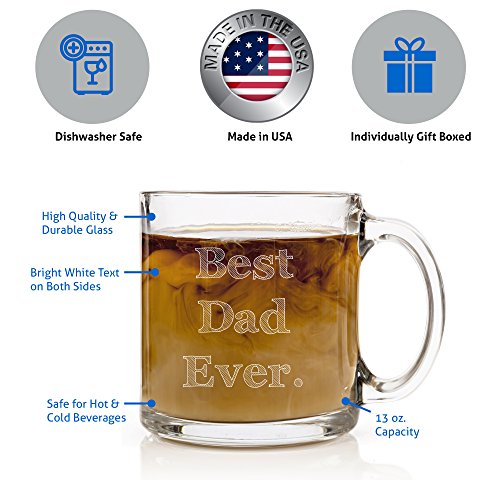 PERFECT GIFT FOR YOUR DAD. This Best Dad Ever Custom Glass Mug is perfect for all fathers! It is a surprising and timely gift for birthdays, Father''s day, Christmas, or any other occasions that your dad will celebrate. This Novelty Coffee Mug is the perfect gift idea for your dad! Make him cry of laughter and show your love with this personalized gift!