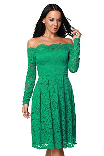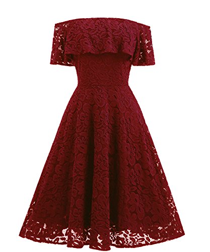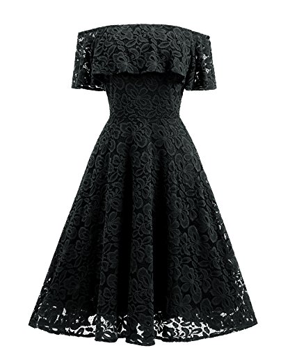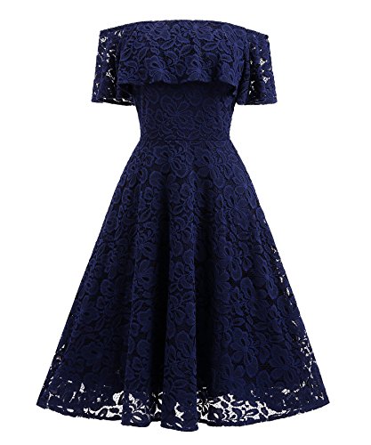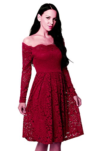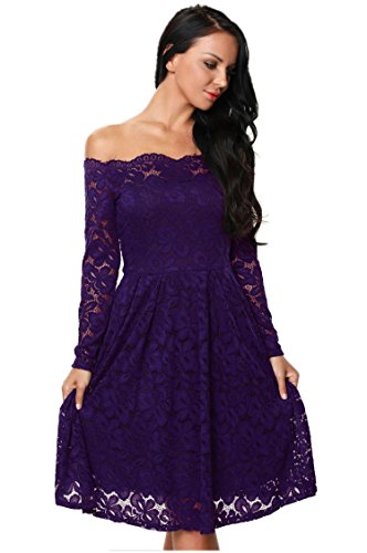 These dress have a fitted bodice with sexy boat neck and off the shoulder, smart high-waisted appearance, fit and a flared skirt which is midi length and loosely fitting. Sultry lace made and just right amount of lining covering. Comes with a zipper for easy wearing. Conceals extra you don't want to show. Highlight your beautiful figure curves in these boutique lace dress