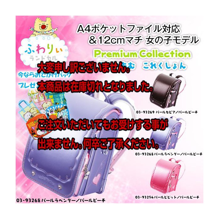 원본상품명: ふわりぃ プレミアムコレクション おまけ付き ランドセル 2015年度モデル 女?用 03-93268 パ?ルラベンダ?/パ?ルピ?チ 送料無料ポイント10倍