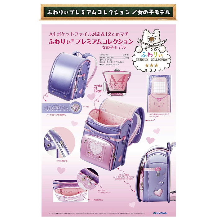후와리 프리미엄 콜렉션 덤 첨부 란도셀 2015년도 모델 여아용 03-93268 펄 lavender/펄 피치 【포인트10배】