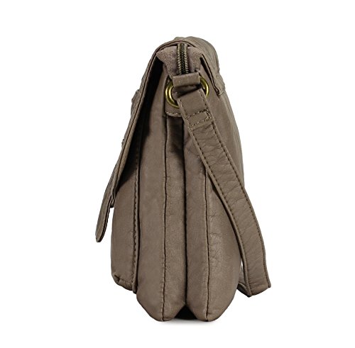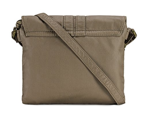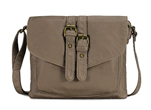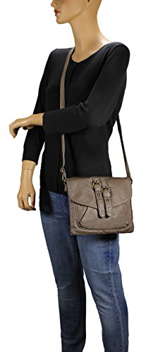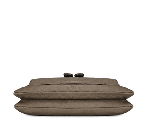 -. Feature : High quality synthetic washed vegan leather with fabric lining. / Modern bronze-toned hardware. / Interior cell phone pocket, multifunctional slip and side zipper pocket. / Adjustable shoulder strap drops 23". / Size: 9.2"x1.2"x7.6"