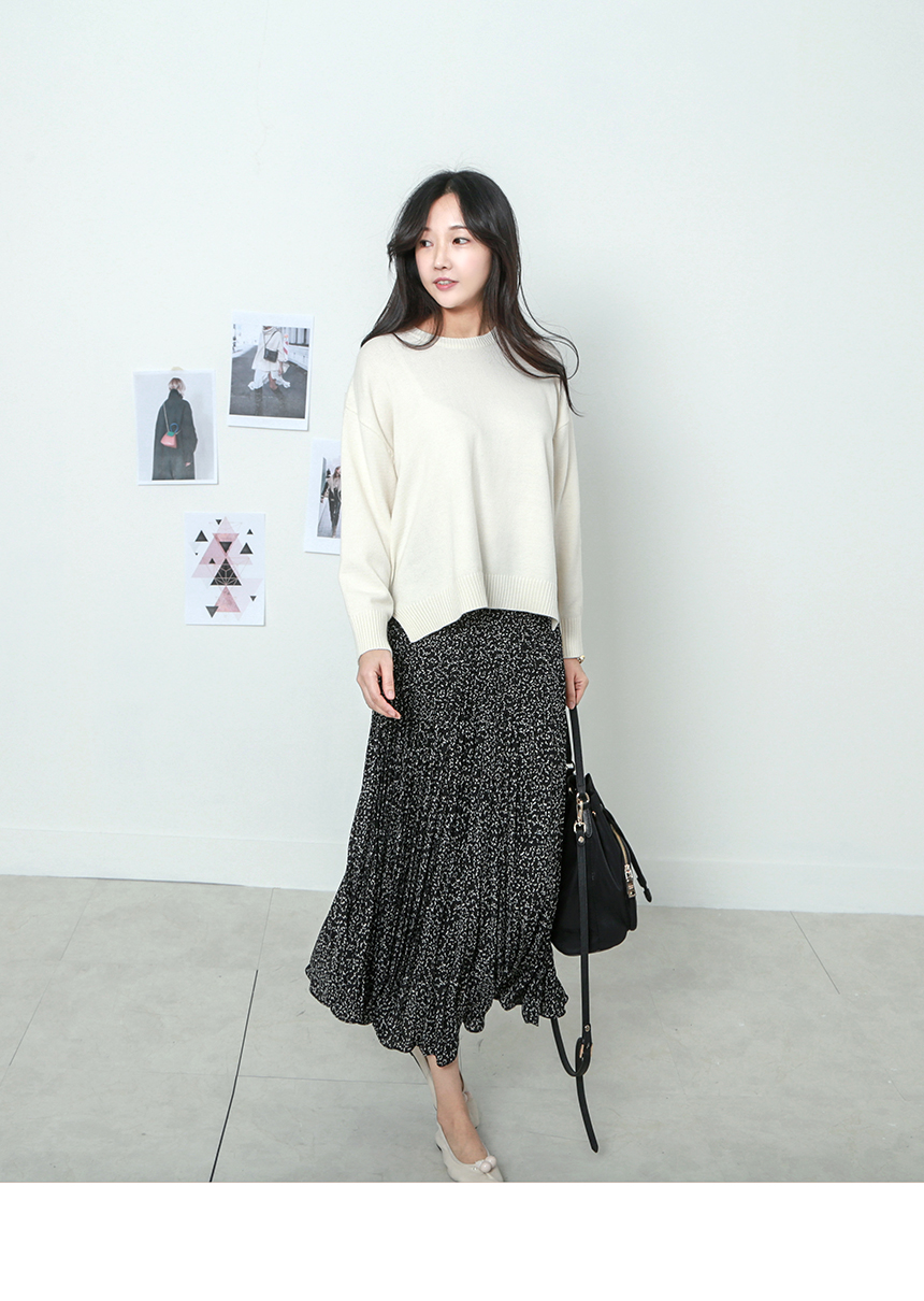 이본 잔꽃 플리츠롱스커트
