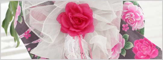 ↑リバーシブル浴衣帯(※別売り)、コサージュ(※別売り)と一緒につけたお写真になります