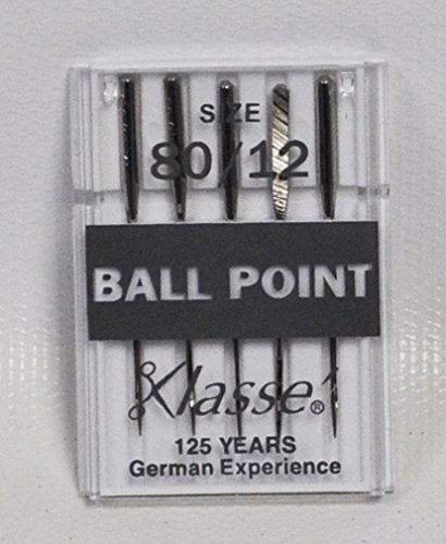 -. Feature : 5 Ball Point 80/12 Needles in Package. / Klasse sewing machine needles are precision-engineered in Germany by Europe's largest needle manufacturer. / Ideal for cotton knits, interlock, rib knits, fleece, double knit, and so most knit fabrics. The tip is more rounded that the Universal needle and is designed to push the fabric fibers apart rather than cutting them, preventing the knit fabric laddering or running after stitching. Generally threads such as polyester or polyester/cotton blends are best.