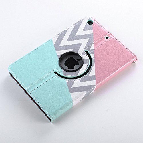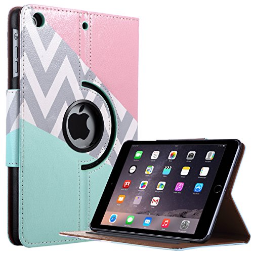 iPad Mini Case,iPad Mini 2 Case,iPad Mini 3 Case,iPad Mini Retina Case,ULAK 360 Degree Rotating Synthetic Leather Case Cover for Apple iPad Mini 1/2/3 with Auto Sleep/Wake Function(Pink/Mint)