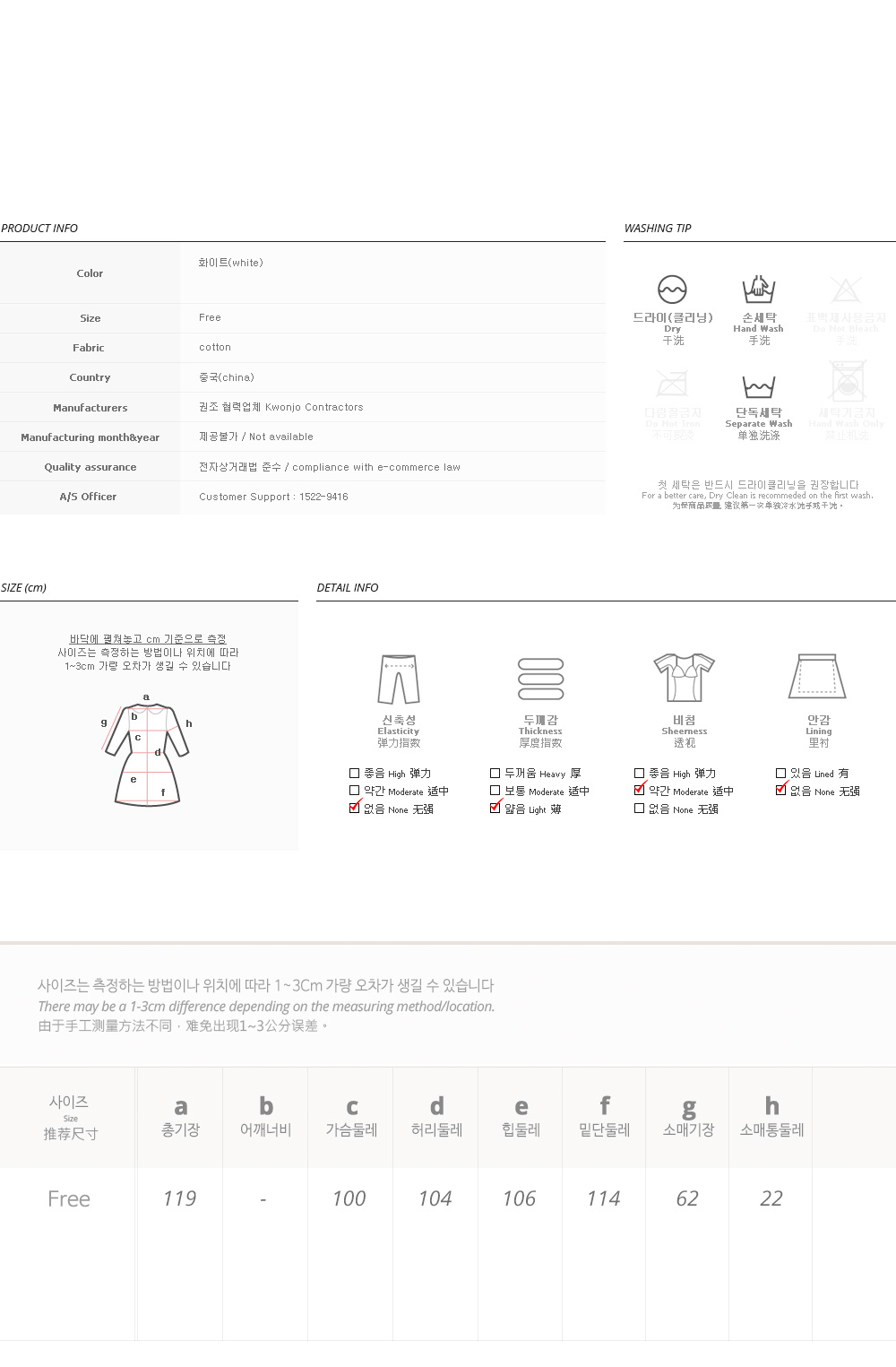 피팅 컬러와 사이즈는 화이트,Free입니다