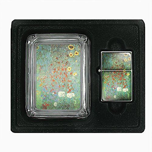 (Perfection In Style)/Household Supplies/Lighters Matches/DIRECT FROM USA/Gustav Klimt Garden Sunflowers Glass Ashtray Oil Lighter Gift Set D-012