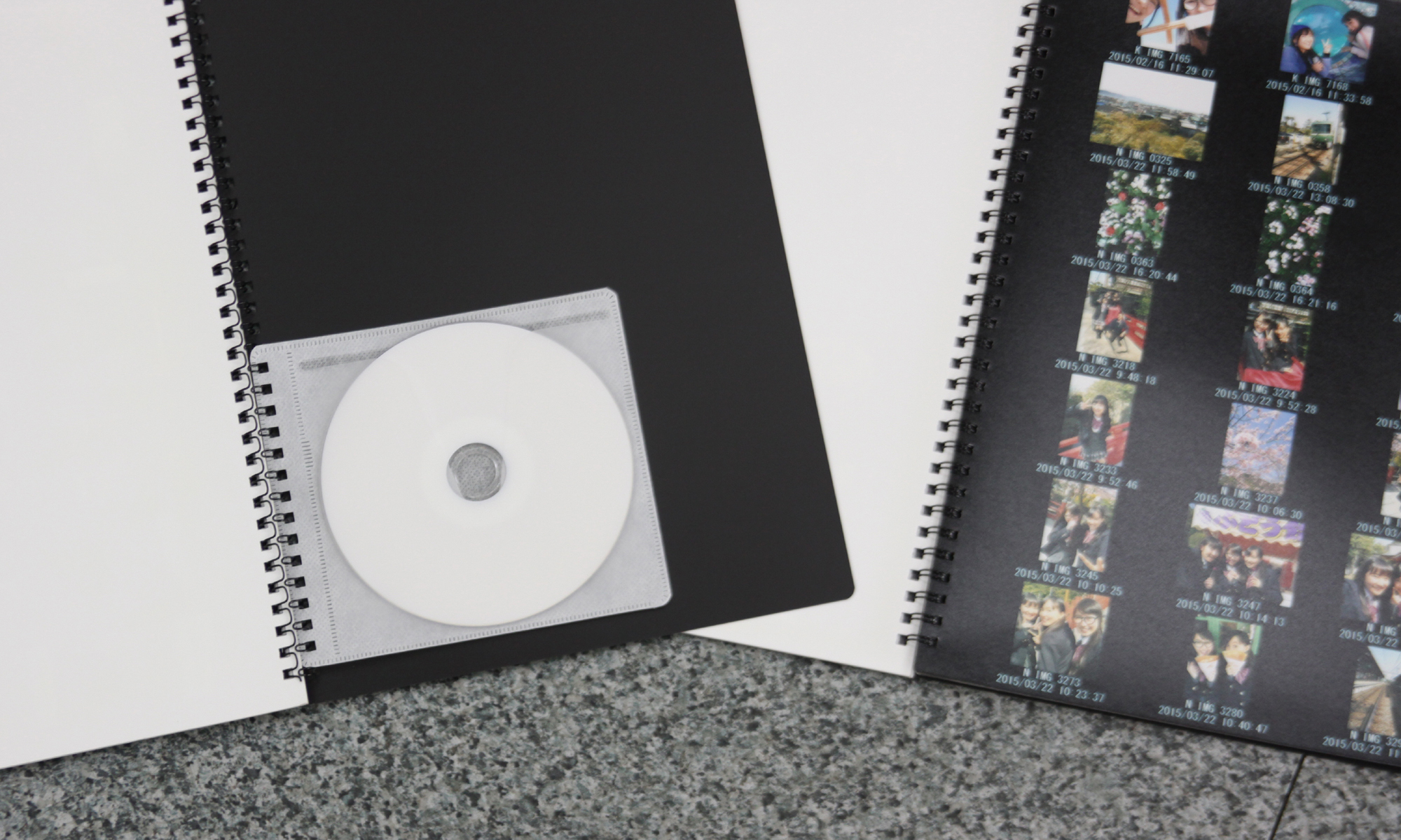 1冊10ページまたは20ページリング製本、最終ページ後にDVD収納用不織布ケース付き