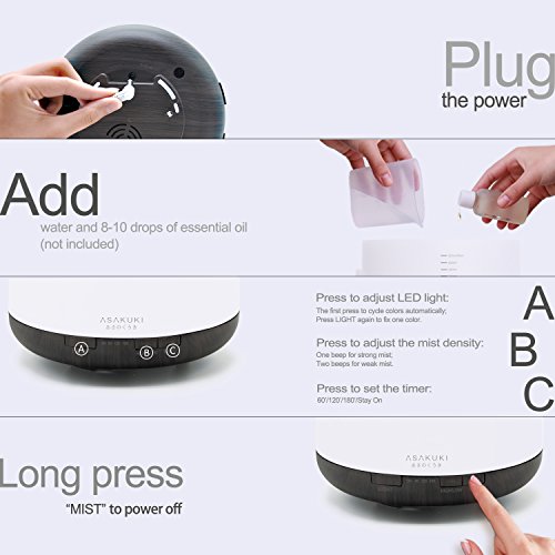Premium Essential Oil Diffuser - Ultrasonic Aromatherapy Fragrant Oil Vaporizer What makes this essential oil diffuser superior to any conventional aromatherapy vaporizer is its many modes and functions: - Easy To Clean Large 500ml Water Tank