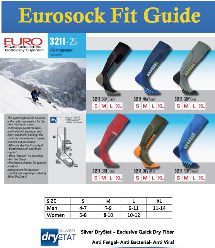 -. Title : Eurosocks 3211 Silver OTC Ski Socks with Drystat Moisture Control - Pairs