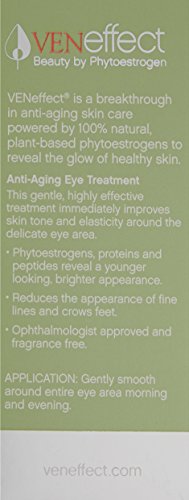 The VENeffect exclusive phytoestrogen technology is ideal for the delicate skin around the eye area as these gentle plant-based super nutrients de-puff, brighten and improve elasticity to both prevent and reduce the appearance of fine lines and crows feet. Our proprietary blend of resveratrol, grape seed, red clover and soy are known to enhance the production of collagen, elastin and hyaluronic acid, the building blocks of young, supple skin. Brighteners, including Vitamin C and B reduce dark circles, while Vitamin E provides emollient and anti-oxidant properties. A favorite of beauty insiders, and makeup artists, your eyes will look more rested and brighter without irritation. Ophthalmologist approved, fragrance free, hypoallergenic, non-comedogenic, gluten free, and paraben free. Made in the USA. About VENeffect: Developed by sisters, Rebecca Booth, M.D., a nationally recognized gynecologist and hormonal wellness expert, and Cecil Booth, a beauty industry expert; VENeffect focuses on the way women uniquely age, providing targeted solutions to effectively achieve the look of skin at peak hormonal vitality. This innovative, technologically-advanced skin care collection addresses the aging process in a new way through the use of its proprietary phytoestrogen complex: plant-based molecules that are proven to safely and effectively restore collagen, increase elasticity and help reverse and prevent the signs of aging.Feature