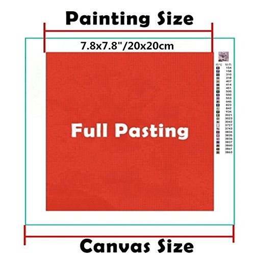 - Size : Full area paste diamond , paste drill site size is 7.8x7.8 inch . There is about 2cm edge for framed .