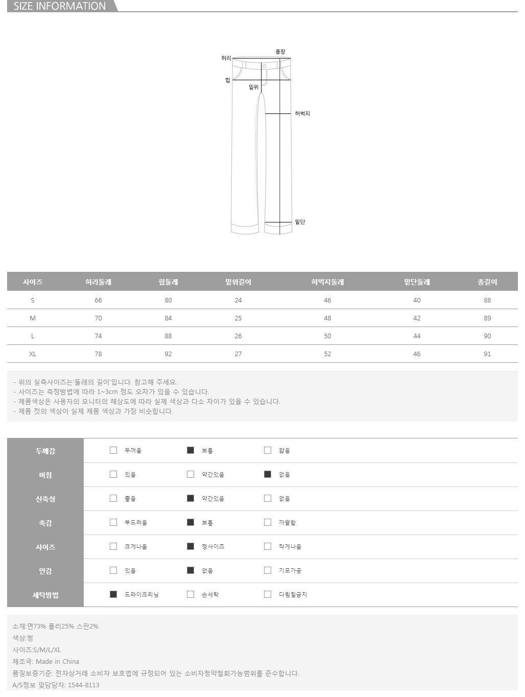 모델의 착용 컬러는 청/S 입니다.