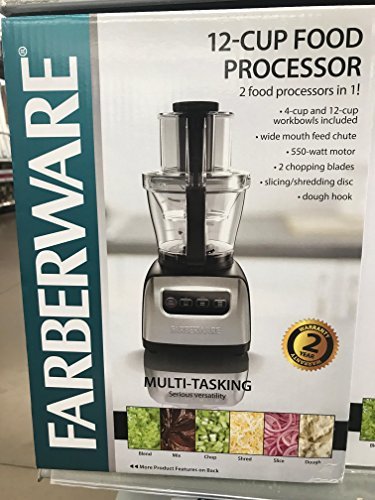 12 cup food processor, 550-watt motor, 2 chopping blades, slicing/shredding disc, dough hook