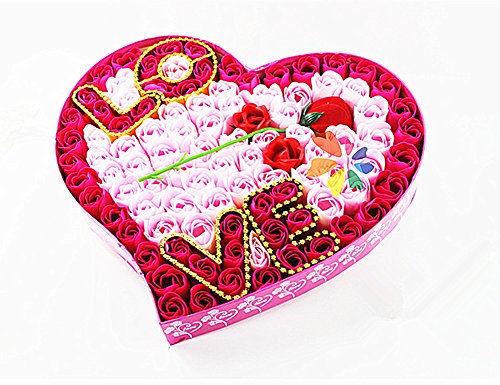 100pcs Flora Scented Bath Soap Rose Flower Petal in heart-shaped Gift Box(Red) By Alimitopia