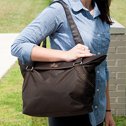 Travelon Large Tote With Flap and Turn Lock Closure (Brown)