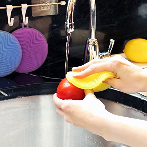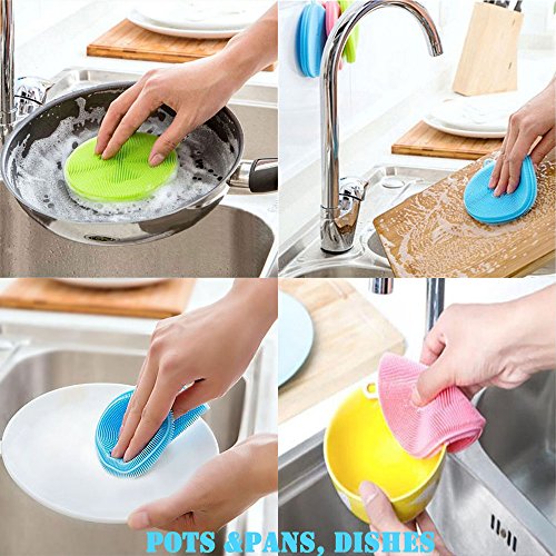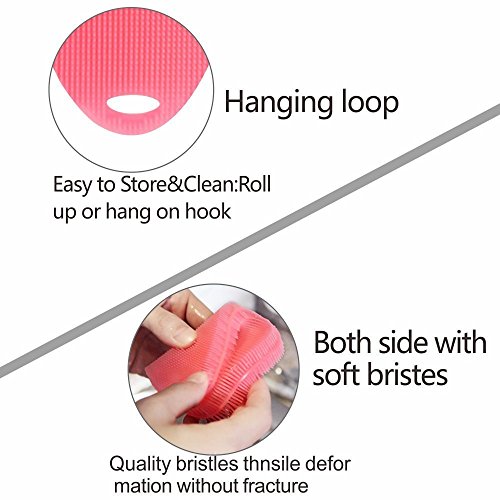 - ♕Upgraded sponges: this silicone scrubber is antibacteria and mildew resistant. traditional sponge is easy to get mildew and give out bad smell, dueing to absorb dirty water and grow bacteria. However, our scrubber puts an end to these problems.