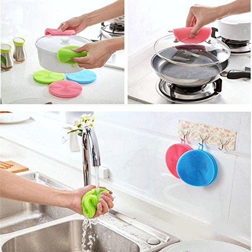 - ♕Easy To Clean And Quick Dry: The silicone sponges can rinse clean quick well and dry completely,ensure no bacteria, no deformation, no residue. Each sponge has a hanging loop for drying or storage.