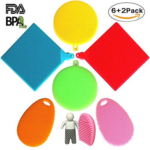 Kitchen Silicone Sponges, Jomilly Dish Scrubber Food-Grade Antibacterial Dishwashing Mildew-Free Sponges for Kitchen Fruit Dish Vegetable Pot Pan(6 Pack+2 Gift)