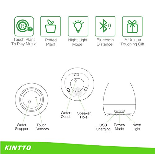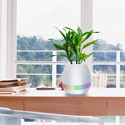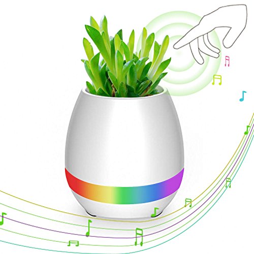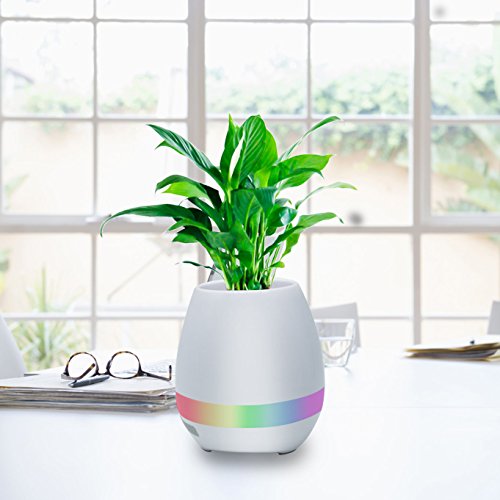 Smart Touch Music Plant Flower Pot, KINTTO Wireless Bluetooth Music Speaker Potted Plant With Multi-color LED Light