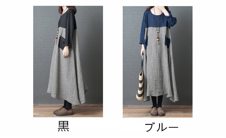 【キーワード】検索綿麻混ワンピース ワンピース ロング レディース リネンワンピース ゆる ロングワンピース マキシ マキシワンピース コットンリネン 体型カバー 長袖 ワンピース チュニック ロングワンピ 体型カバー 森ガール ナチュラル服 秋物 秋ワンピース ゆったり 大きいサイズ 着痩せ 30代 40代 50代 60代 お洒落 おしゃれ オシャレ ゆるっと 旅行 ママワンピース 母親 ママ ワンピース M L 2L 3L ブルー 黒【ご注意】:初めのうち色落ちする事がありますので他のものとは別にお洗いください。・塩素系漂白剤は使用しないでください。★素材:ポリエステル.綿麻★生地の厚さ:普通 ★生産国:中国★カラー:黒/ブルー(写真参考)※お客様ご使用のPC環境により商品画像のカラーが多少異なる場合があります。仕入時期により多少デザインなど異なる場合があります。ご了承ください。★サイズ(CM):M:着丈113 バスト104 肩幅39 袖丈54 L:着丈114 バスト108 肩幅40 袖丈54.5XL:着丈115 バスト112 肩幅41 袖丈552XL:着丈116 バスト116 肩幅42 袖丈55.5※サイズは人の手によって測っているため、1-3cmの誤差がある場合がございます。予め