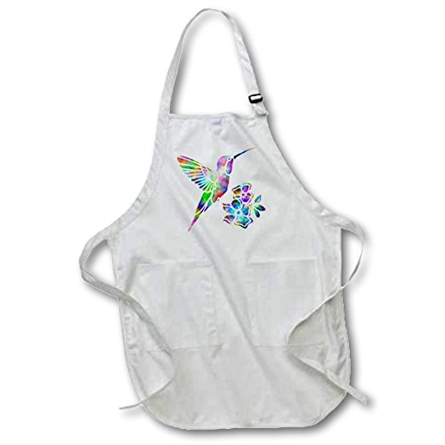 3dRose Rainbow Tie Dye Hummingbird and Flowers - Full Length Apron, 22 by 30-Inch, White, with Pockets (apr_220824_1)