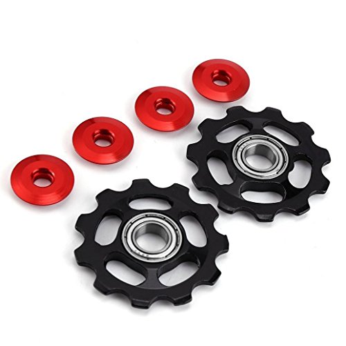 ▶ Features: ▶ 100% brand new and high quality ▶ Material: Aluminium ▶ Brand new and high quality ▶ Bike Cycling Aluminium Jockey Wheel Rear Derailleur Pulley 11T ▶ Teeth: 11T ▶ Bearings: Upgraded RS bearing. ▶ Design for outdoor Bike ▶ Type: 11 Gear Guide Pulley ▶ Color:As shown in figure display ▶ Anodised CNC machined bicycle jockey wheel with sealed bearing for center bolt derailleurs. ▶ 11 teeth bicycle rear derailleur accessary for Shimano/Sram/Campagnolo. ▶ Collar diameter is 4mm,5 mm and 6mm, please confirm whether suitable for your bike ▶ Dimensions: Width (thickness): 8.5mm, Bolt hole ID: 4mm,5mm and 6mm Diameter: 42mm ▶ Packing included: 1 x 2 pcs Bike 11T Aluminum Sealed Bearing Jockey Wheel Rear Derailleur Pulleys 0
