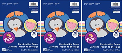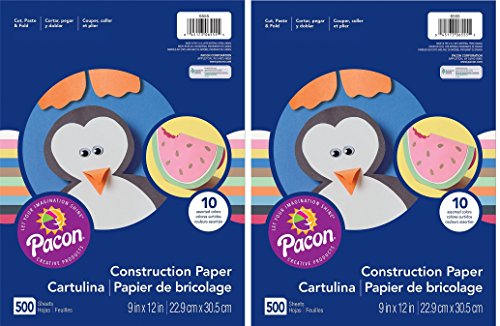Pacon Lightweight Construction Paper is perfect for smaller beginner arts and crafts projects. This assortment contains 10 colors: scarlet, black, orange, brown, pink, blue, sky blue, holiday green, yellow and white. This paper is great for classrooms, and is recyclable. This Pacon Lightweight Construction Paper assorted pack comes with 500 sheets of 9-inch by 12-inch paper. Pacon Construction Paper allows you to let your imagination shine!Feature