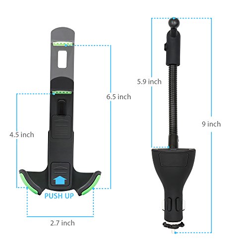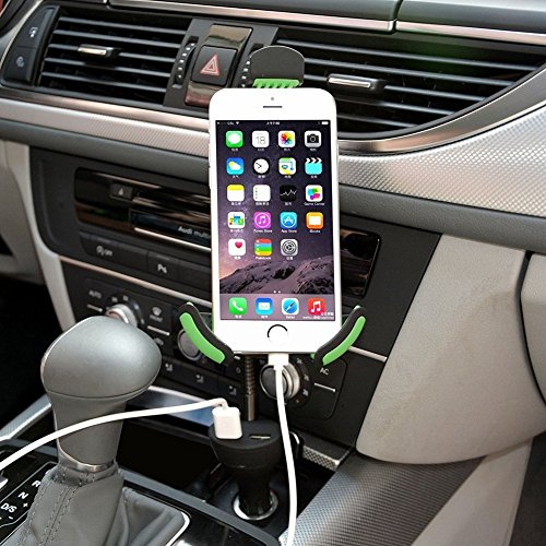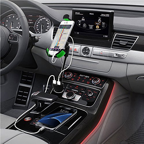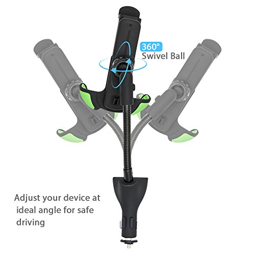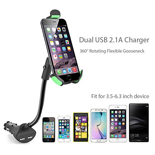 Universal Car Mount Charger, Gooseneck Car Cell Phone Holder with Dual USB 2.1A Car Charger with Over Charge and Over Current Protection for 3.5-6.3 Inch Smartphone