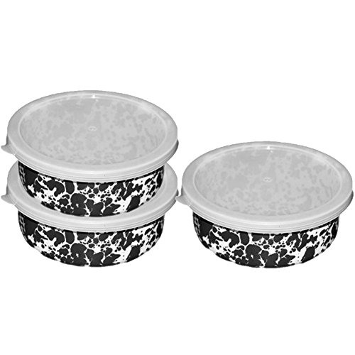Enamelware 3 Piece Storage Bowls w/Lids - Black Marble