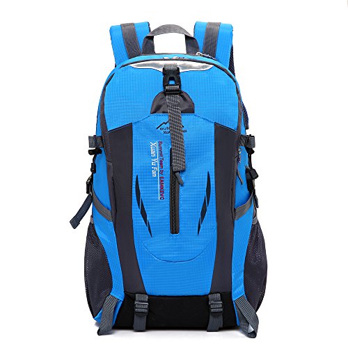 Hiking backpack crafted from water resistant and tear resistant nylon fabric, very durable and practical. Ergonomic foam padded shoulder straps and back support for best ventilation and easing burden. Various pockets such as elastic side pockets, hipbelt pockets, front pockets etc. With strong hanging system to carry more items.