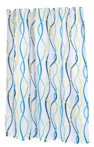 Carnation Home Fashions 100-Percent Polyester Fabric Print 70 by 84-Inch Shower Curtain, X-Long, Claire, Blue/Yellow Stripes