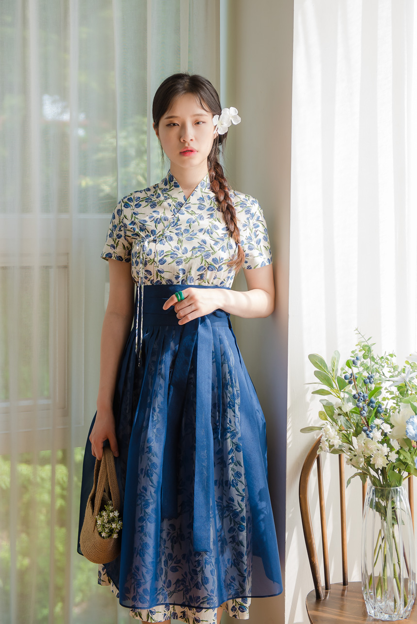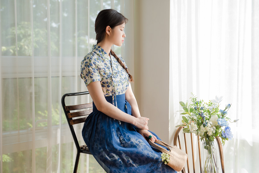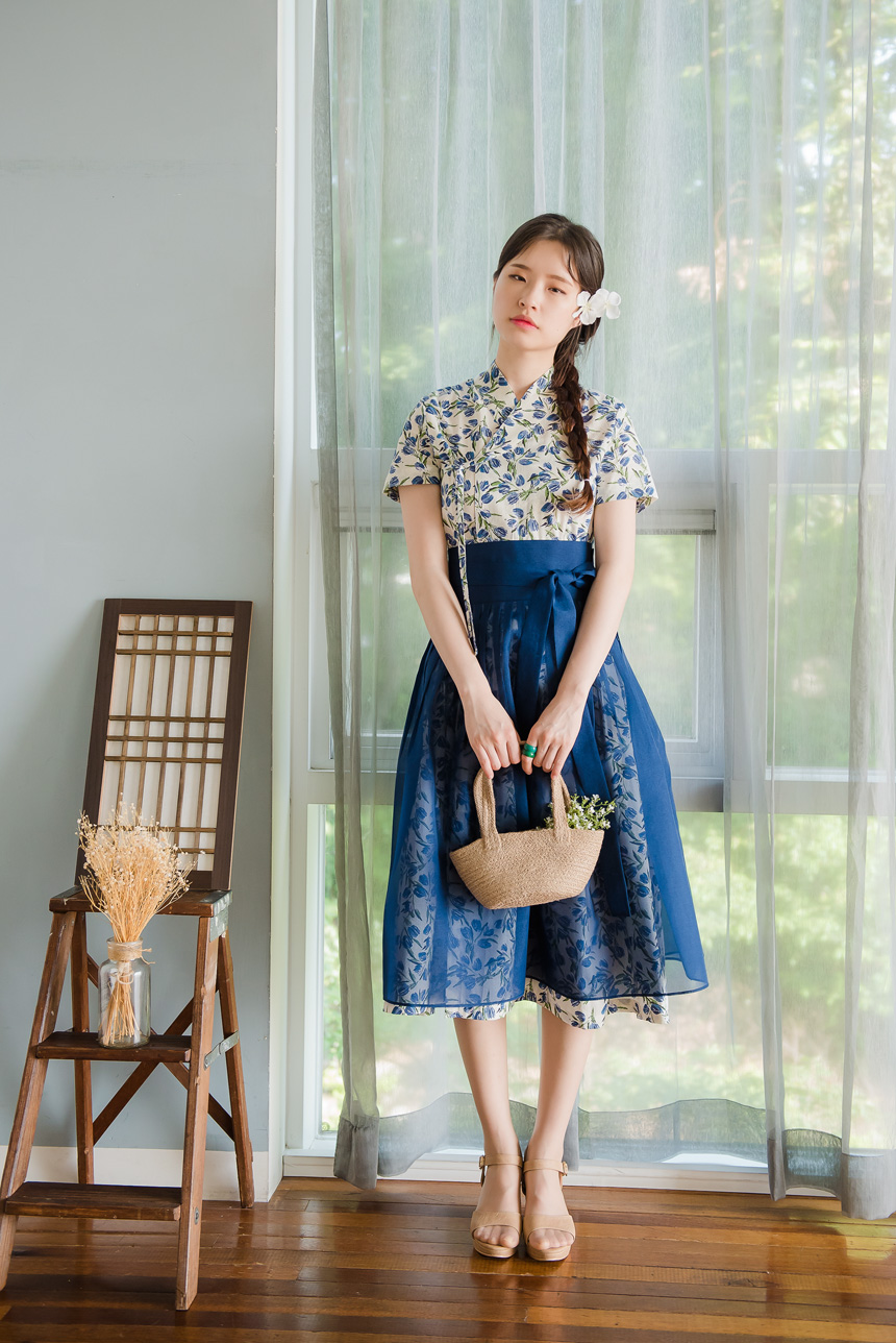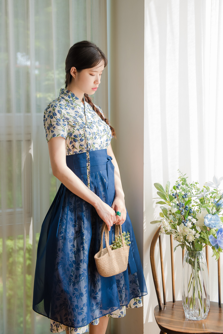 시스루 덧치마와 함께 코디하시면 원피스의 꽃무늬가 살짝씩 보이는 청초하고 신비로운 한복룩을 완성하실수 있답니다.