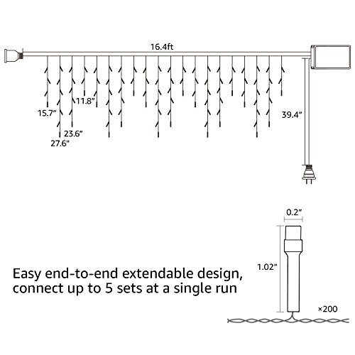 TORCHSTAR 16.4ft Christmas LED Icicle Lights, Extendable 200 LEDs 8 Work Modes Starry Light Strings for Xmas, Holiday, Festival, Wedding, Party, Event Decorative Lighting, Warm White