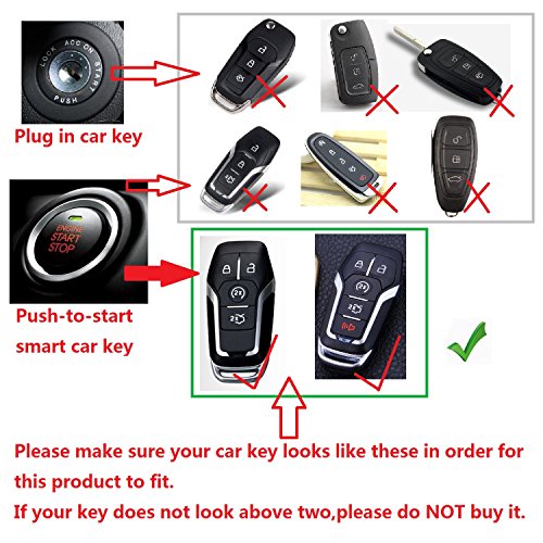 - ✔PLEASE NOTE: Please compare the SECOND GALLERY PICTURE with your remote key first before purchase key fob cover CERTAINLY, because this key fob cover only fits for Ford ENGINE START STOP SYSTEM Smart Keyless entry remote key. Only one key fob cover, keys are NOT included.