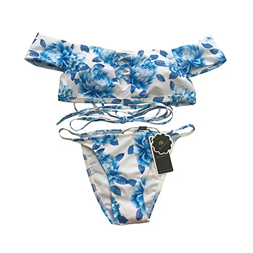 Title : Sherry007 Women's Off Shoulder Strapless Bandeau Top Brazilian Bottom Bikini Set