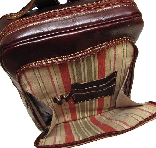 -. Feature : Italian Polished Calfskin Leather / Inside Zip Pocket and Smartphone Holder / Dimensions: 14 x 10 x 4. Weight: 2LB / Floto Stripe Canvas Interior / Brass or Stainless Steel Hardware