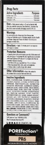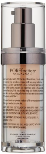 Perfect and protect with POREfection Foundation. This oil, paraben and fragrance free formula is infused with anti-aging antioxidants of vitamins A & E, olive leaf extract, lemon fruit extract and papaya fruit extract to help soothe, nourish and rejuvenate while SPF 20 provides protection from UVA/UVB rays to help keep skin healthy, youthful and radiant. Get a poreless-looking, silky-smooth finish and achieve complexion porefection with LORAC. POREfection Foundation provides medium to full coverage and is suitable for all skin types, including sensitive skin.Feature