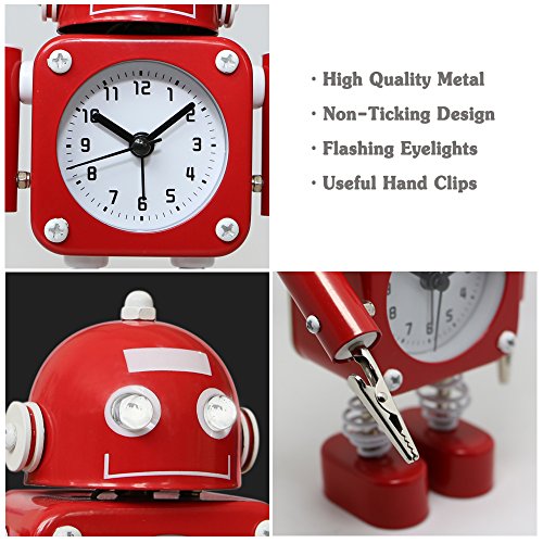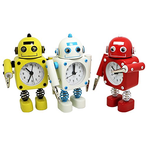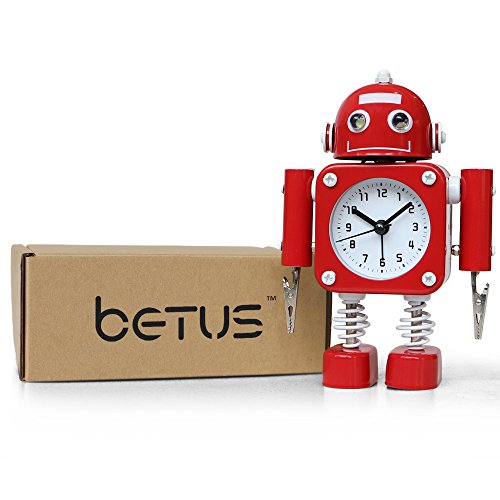 Studio : Betus Publisher : Betus Binding : Kitchen Product Description Perfect for Light Sleepers Our robot alarm clock is made of high quality stainless metal. Black numerals on a white dial enable you to see the time easily. It operates silently without annoying tick tock sound, ideal for those who need complete silence to fall asleep.