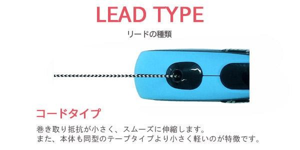 | コードタイプは巻き取り抵抗が小さく、スムーズに伸縮します。 また、本体も同型のテープタイプより小さく軽いのが特徴です。使い心地のよいスライド操作のブレーキシステムを採用したペット用リードです。 |