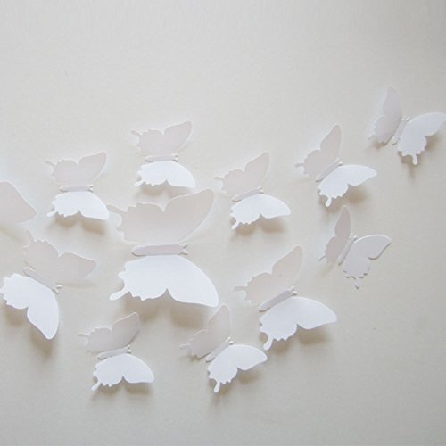 12pcs 3D Butterfly Removable Mural Stickers Wall Stickers Decal for Home and Room Decoration (white)