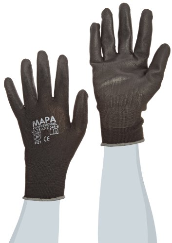 MAPA Ultrane Lite 548 Polyurethane Palm Coated Glove, Work, 9-1/4" Length, Size 8, Black (Pack of 12 Pairs)