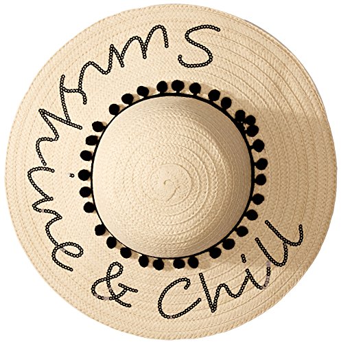 Binding : Apparel Product Description Lay out on the sandy shores in this colorful Betsey Johnson® hat! Paper yarn panama with pinched crown. Rainbow gradient pom pom hatband. Floppy, wide brim with sequined "Sunshine Chill" detailing. Interior sweatband for added comfort. 92% paper yarn, 8% polyester. Spot clean only. Imported. Measurements: Circumference: 23 in Brim: 4 1?2 in 0