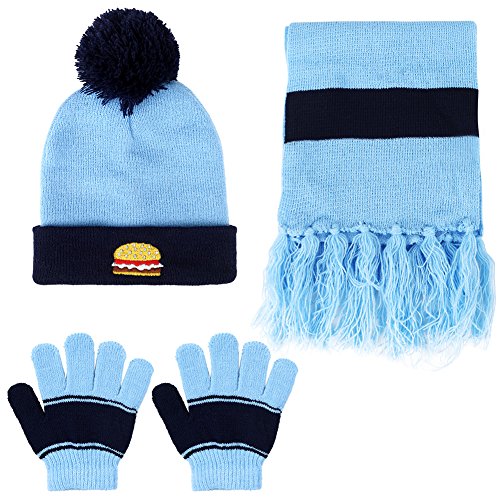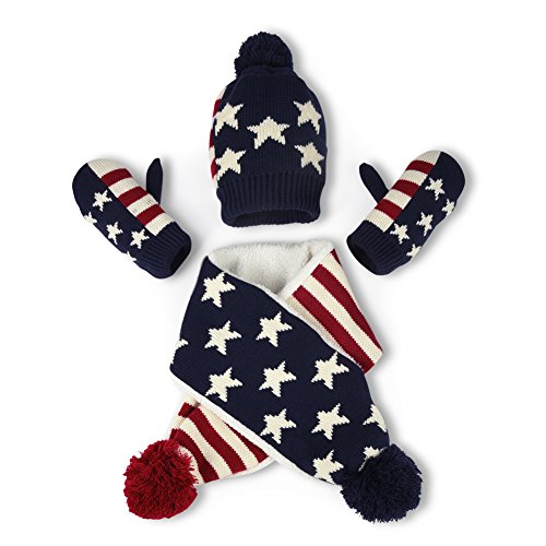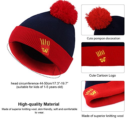 Binding : Apparel Product Description Information: Want a set of clothing accessory for your child to wear in Winter? Keep your child comfortably warm during the cold months with this knitted winter hat, scarf and gloves set. The colorful knitted hat and scarf fits toddlers and young kids from the ages of 1-4 years old. The hat is embellished with a pompon and buttons. The comfortable knitting yarn and fleece lining are quite warm to wear. Feature: Material: knitting yarnfluff Gender: baby(1-4 years old)