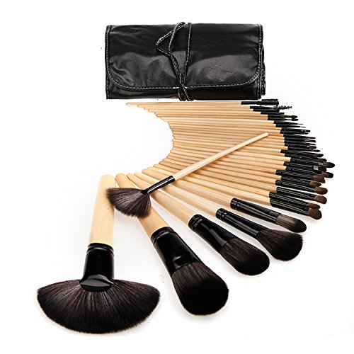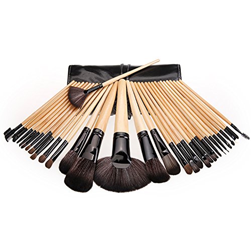 Vigour Beauty 32pcs Makeup Brush Set Cosmetic Kits with Pouch Case for Women Gift Set Wood Color