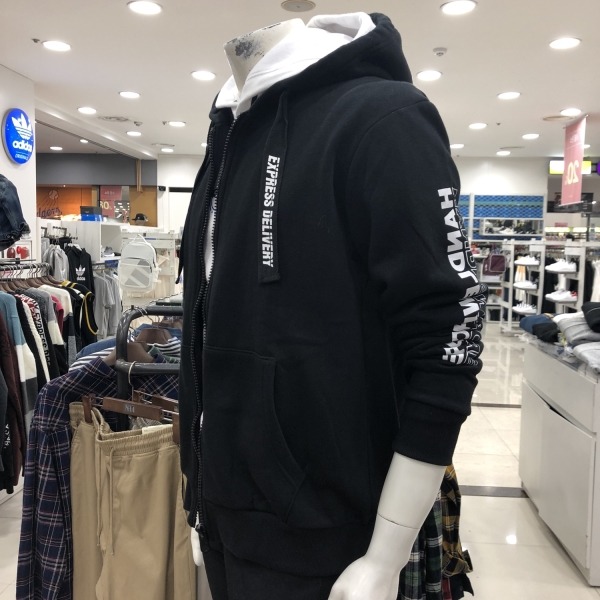유니)소매그래픽 기모쭈리 후드집업