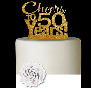 CakeSupplyShop Item#050CTA - 50th Birthday / Anniversary Cheers Super Gold Glitter Sparkle Elegant Cake Decoration Topper