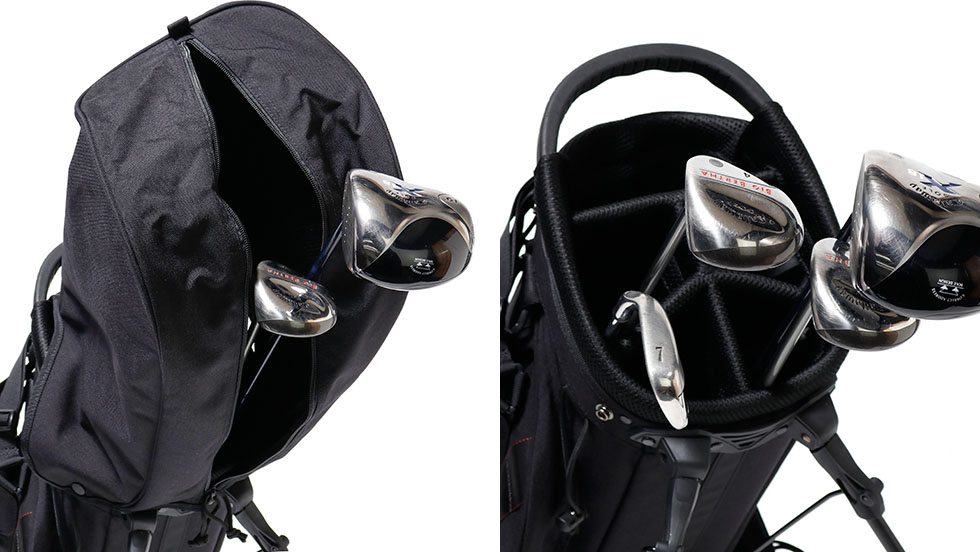 Briefing original model, functionality and attractive caddy bag charm that makes the golf scene more gorgeous. It is a stand type It will be active in various scenes, the storage function and equipment are finished to a high level.